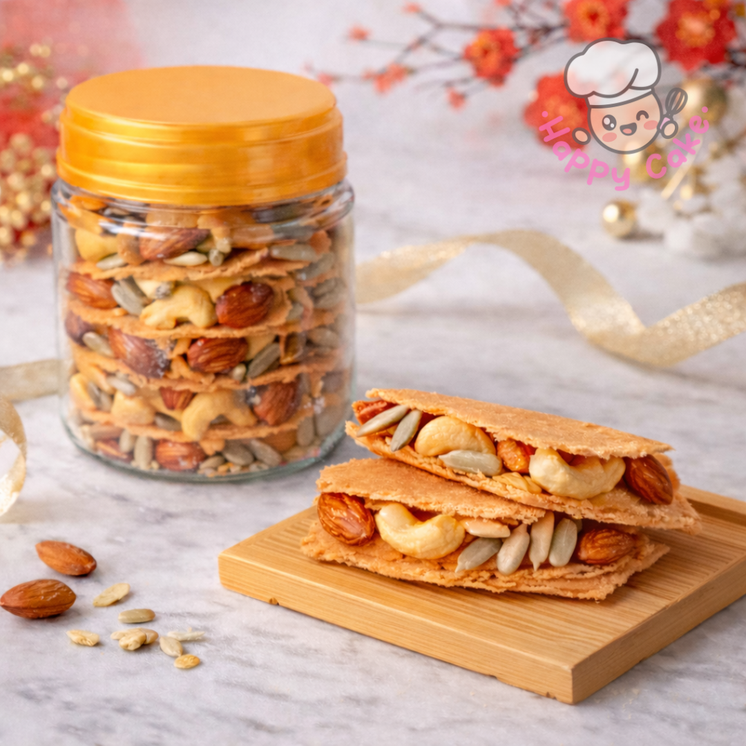 In Chinese New Year traditions, nuts represent abundance, growth, and lasting prosperity. A mix of nuts signifies “多福多财” (many blessings, much wealth) — making this kapet a meaningful treat to welcome the year ahead.